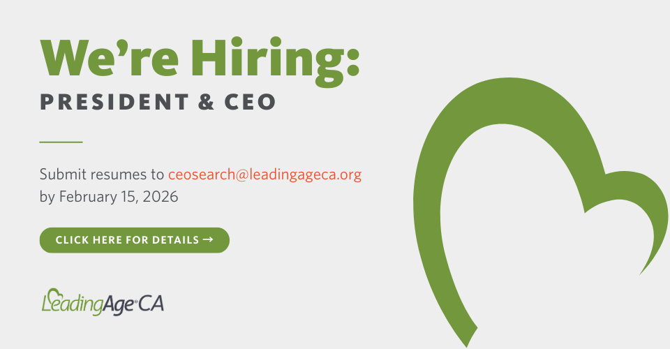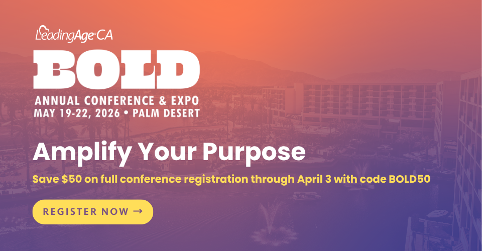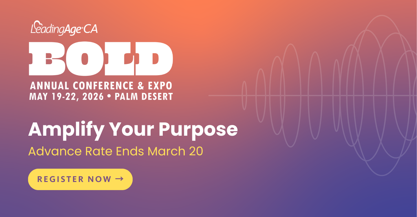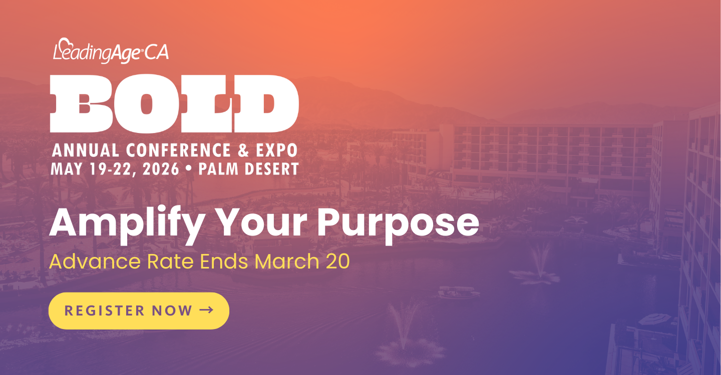 Everyone can make a difference! Join LeadingAge California as we fight on behalf of California's older adults to ensure their access to innovative, quality, and affordable long-term services and supports. Login below to join our community and access your connection to news and updates.